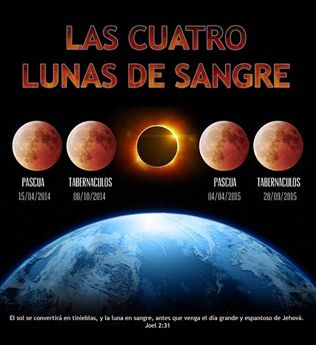 "El sol se convertirá en tinieblas, y la luna en sangre, antes de que venga el día grande y espantoso de Jehova." Joel 2:31